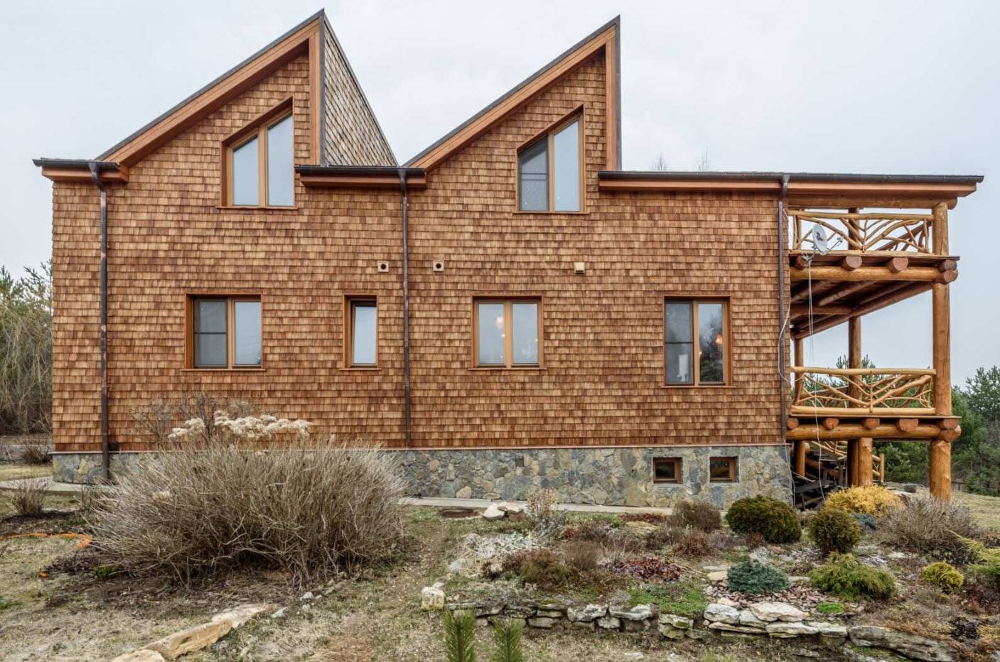 Наиболее часто используемый материал, устойчив к распаду. Делают ее из красного и белого кедра, красного дерева. Длина такой черепицы обычно не превышает 40, 45, 60 см. Толщина составляет 1-2 см в разрезе. Для улучшения долговечности деревянная черепица должна быть установлена с циркуляцией воздуха. Эксперты рекомендуют обшивать такую черепицу.