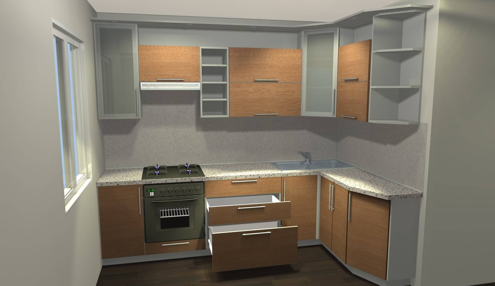 Прежде всего необходимо определиться с размещением в пространстве кухонной мебели: в одну или две линии, в виде буквы П или Г, или же будет взят за основу полуостровной или островной вариант. Если имеется недостаток свободного пространства, без проблем можно подобрать маленький угловой гарнитур, но нужно точно подобрать размеры шкафов. Угловые кухни маленького размера позволяют максимально сэкономить пространство.