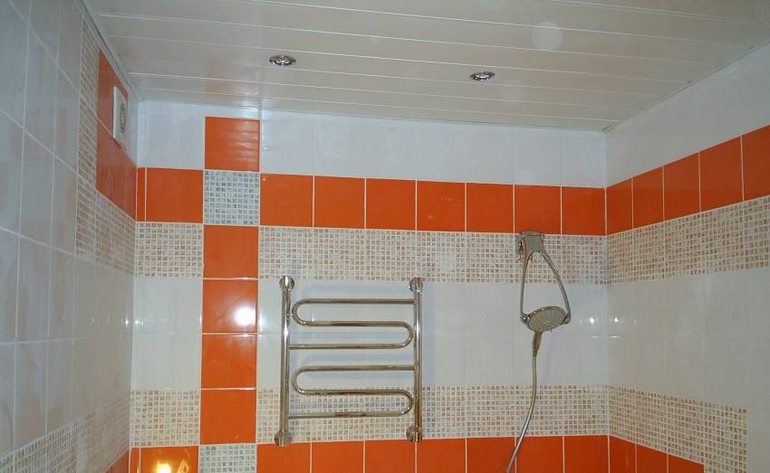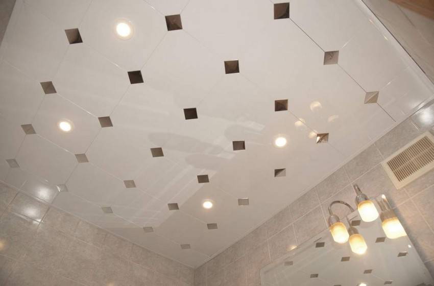 Вариант такой очень легкой потолочной облицовки не потребует обустройства специальной усиленной конструкции, но необходимо помнить также о недостатках реечной системы, среди которых снижение уровня потолка примерно на 4-10см, что очень ощутимо для небольшого помещения ванной комнаты.