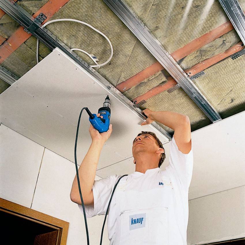 Обрабатываем поверхность потолка для последующего монтажа основного каркаса. Выбираем тип конструкции.