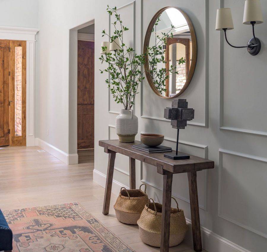 Обычно прихожая – это темное узкое помещение, в котором часто бывает неуютно. Чтобы сделать входную зону более “дружелюбной”, добавьте живые растения. Идеально подойдут тенелюбивые виды: такие встречаются и среди цветущих сортов, и среди неприхотливых суккулентов.
