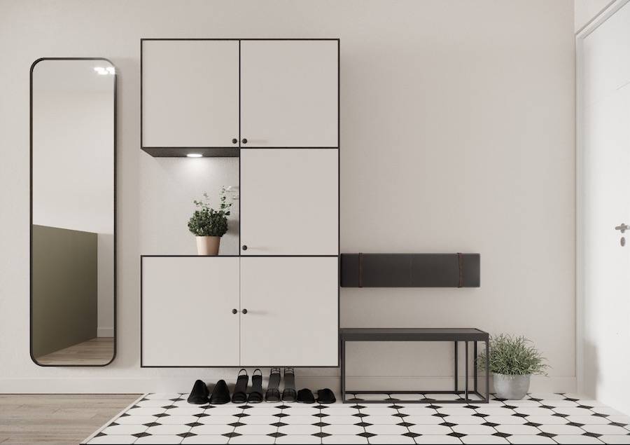 Необычные статуэтки-шары в декоре минималистичной прихожей