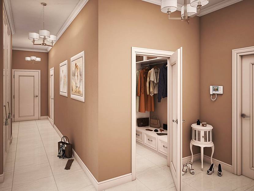 Для ремонта и оформления дизайна коридора можно выбирать любые отделочные материалы. В этом помещении будут одинаково хорошо смотреться как виниловые обои, так и фактурная штукатурка, нередко прихожую декорируют натуральным камнем. Но все эти решения будут выглядеть уютно и привлекательно только при удачном подборе цветов и их сочетаний. Цветовые решения могут не только повлиять на эстетическое восприятие прихожей, но и визуально увеличить ее габариты.