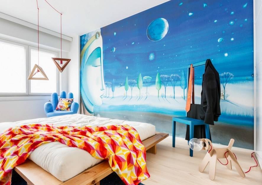 Поэтому все без исключения персонажи должны выглядеть красочно, быть позитивными и добрыми. Рисунки на стенах хорошо подходят при дизайне небольшой и узкой спальни. Этот простой способ позволит визуально расширить ее и получить неповторимый дизайн.