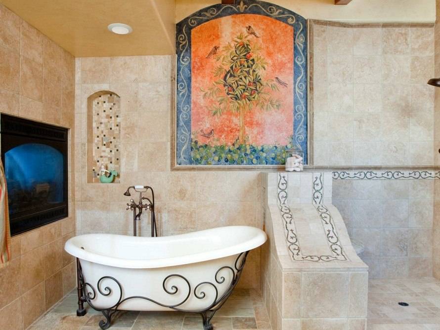 Нанося изображения с помощью водорастворимых красок на сырую штукатурку, можно получить настоящий шедевр с яркими, насыщенными расцветками.