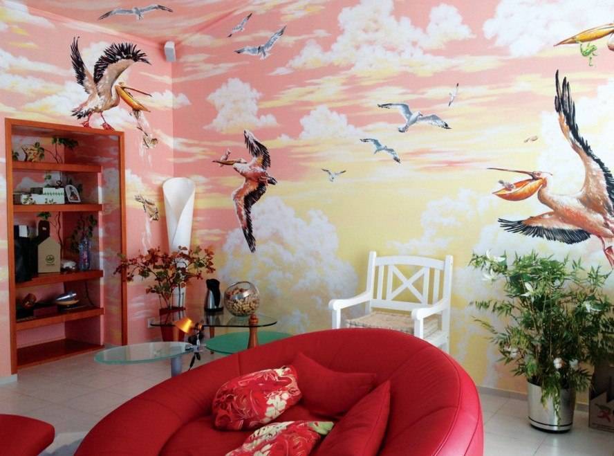 Роспись стен в гостиной