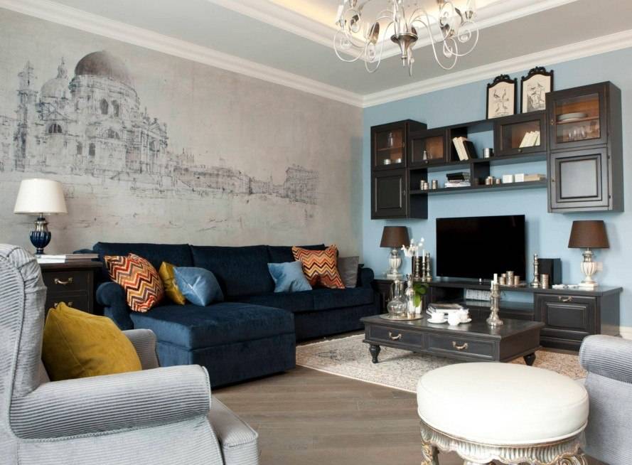 Единственная комната, в которой практически нет запретов на выбор сюжета — зал. Главное требование — изображение должно подходить по стилю и темпераменту всему интерьеру.