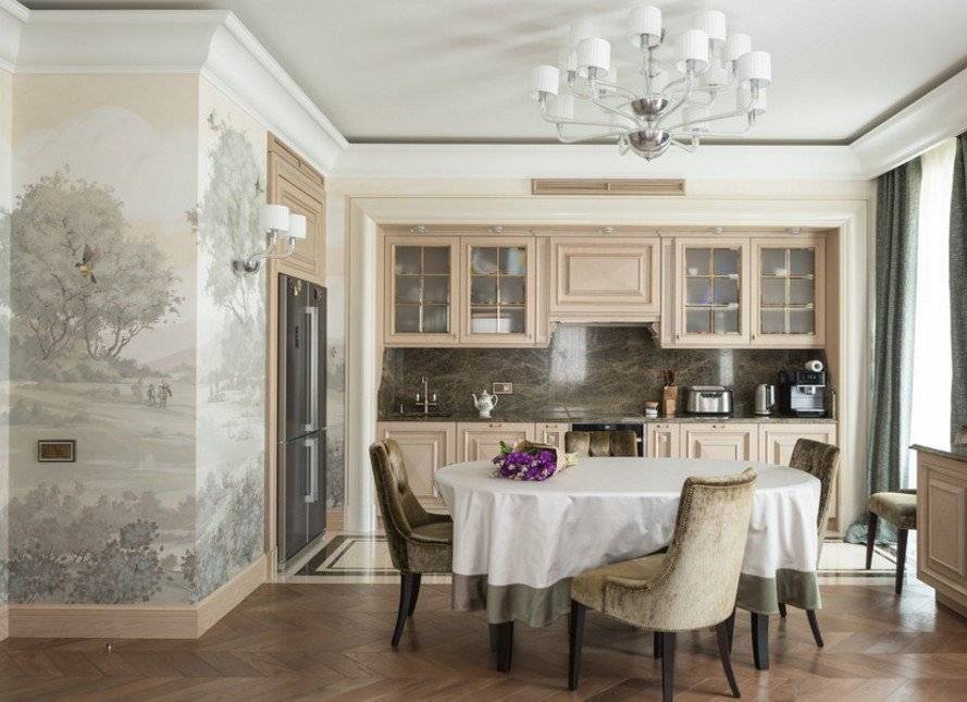На фото художественная роспись стен в обеденной зоне