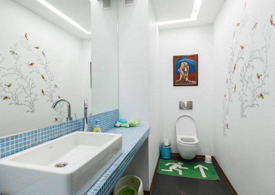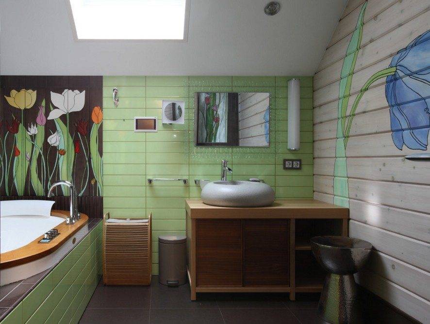 Нежные и естественные картины природы живописно преобразят квартиру. Не все жители городов могут себе позволить частый выезд на природу, поэтому отличный дизайнерский креатив в отделке – впустить растительность в квартиру. Небольшие джунгли и витиеватая беседка уютно украсят ванную, туалет.