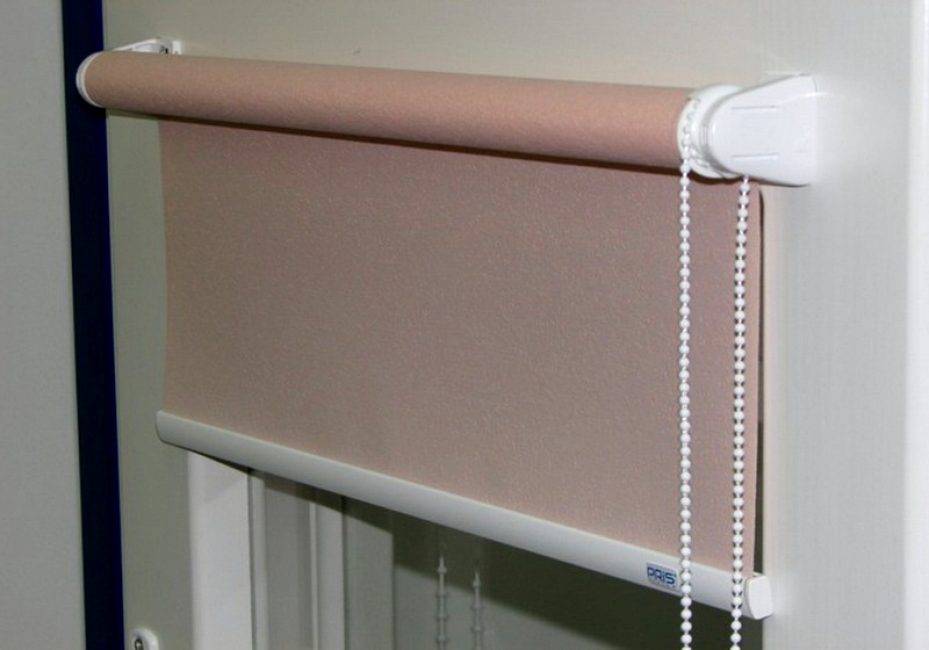 - «Мини» – небольших размеров, поэтому устанавливают на отдельные створки: глухие или открывающиеся. Вал для намотки полотна размещается сверху. Штора опускается под весом установленного снизу груза.