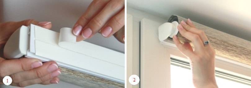 Повесить жалюзи на скотч своими руками очень просто, но такой способ не дает право на ошибку. Если шторы установлены неровно, то придется снимать конструкцию, отдирать скотч и переклеивать заново. Обязательно посмотрите видео-советы мастера, он объясняет все нюансы монтажа кассетных карнизов на скотч.