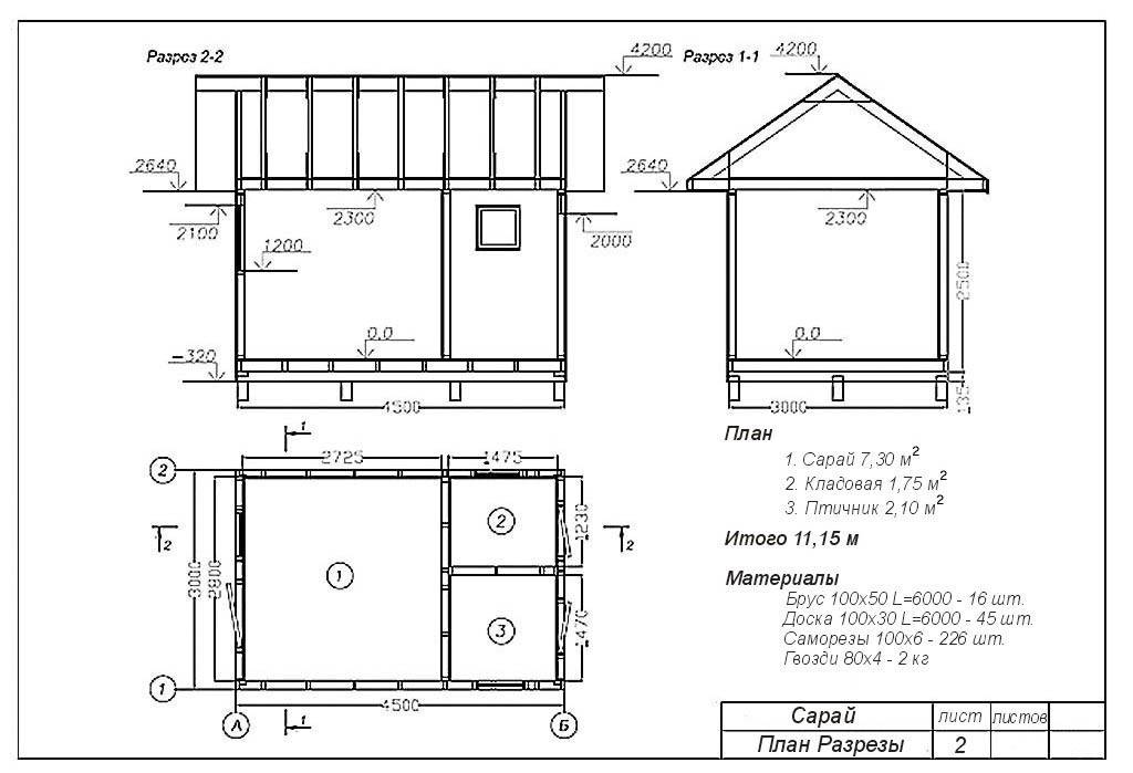Сарай — капитальное сооружение, поэтому чертеж является базовой основой для как расчета материалов, так и для дальнейшего строительства