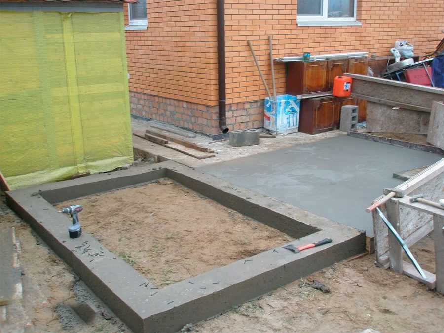 - Заливка фундамента (оставшейся не залитой площадки, которая будет одновременно и фундаментом, и полом).