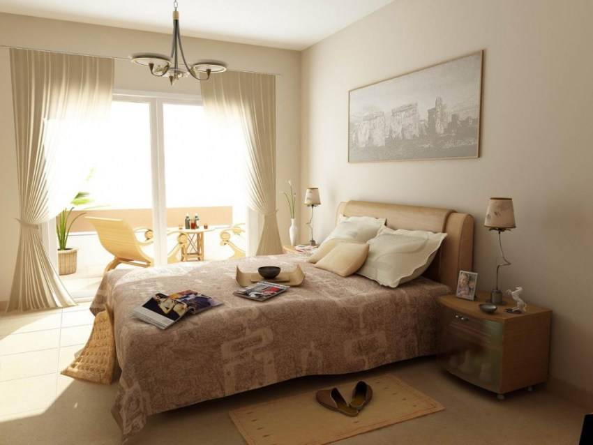 В таком случае шторы в светлой спальне могут быть чисто белого цвета. Другие элементы интерьера вполне могут быть выполнены в более насыщенных оттенках.