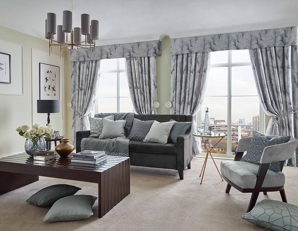 Могут ли появиться, например, в интерьере гостиной серые шторы с узором? А почему бы и нет? Текстиль вполне может содержать яркие и стильные принты.