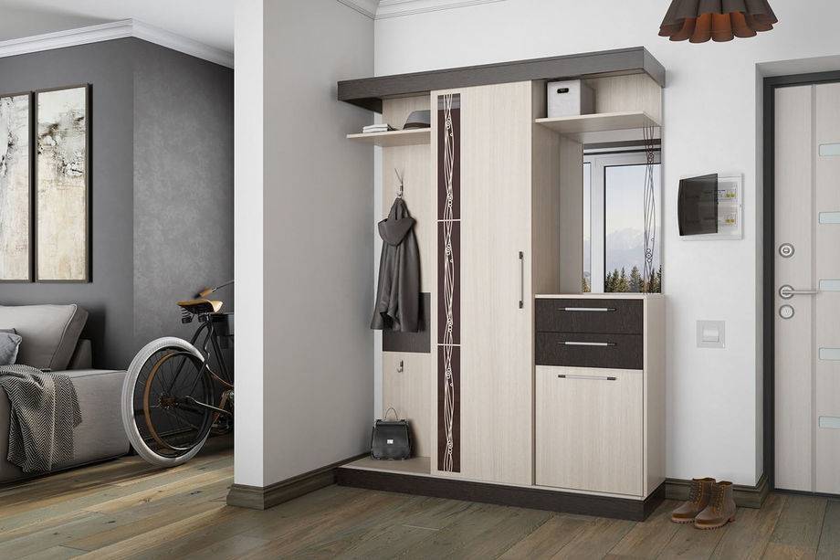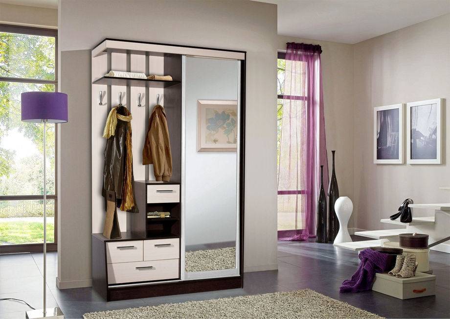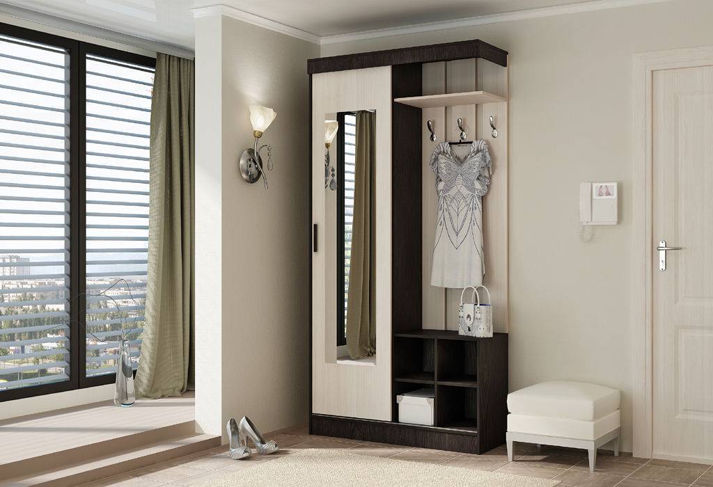 - Универсальность. Установка одного шкафа с легкостью заменит целый комплект полочек, тумб и комодов, которые «съедают» и без того компактное пространство входной зоны.