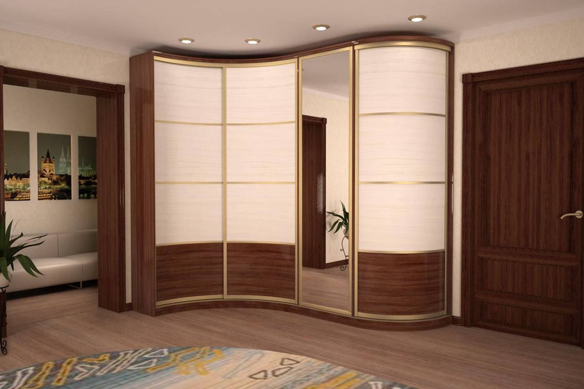 МДФ позволяет создавать округлые формы для мебели. Такие шкафы купе называют радиальными