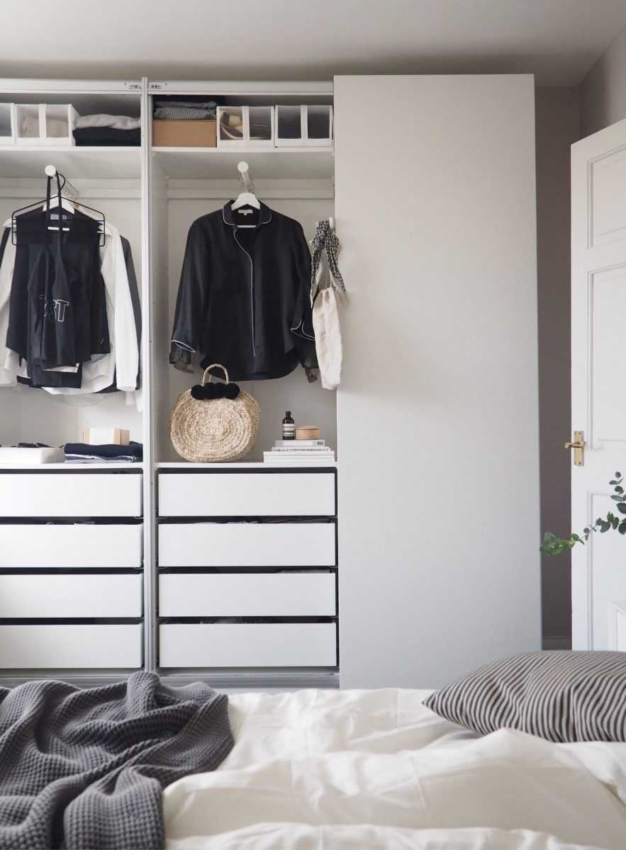 От того, что будет размещаться в шкафу, зависит и его внутреннее наполнение. Подумайте, нужны ли вам полки для легкой одежды или лучше больше места выделить под штангу для плечиков, пригодятся ли вам выдвижные ящики, нужны ли открытые полочки и т. д.