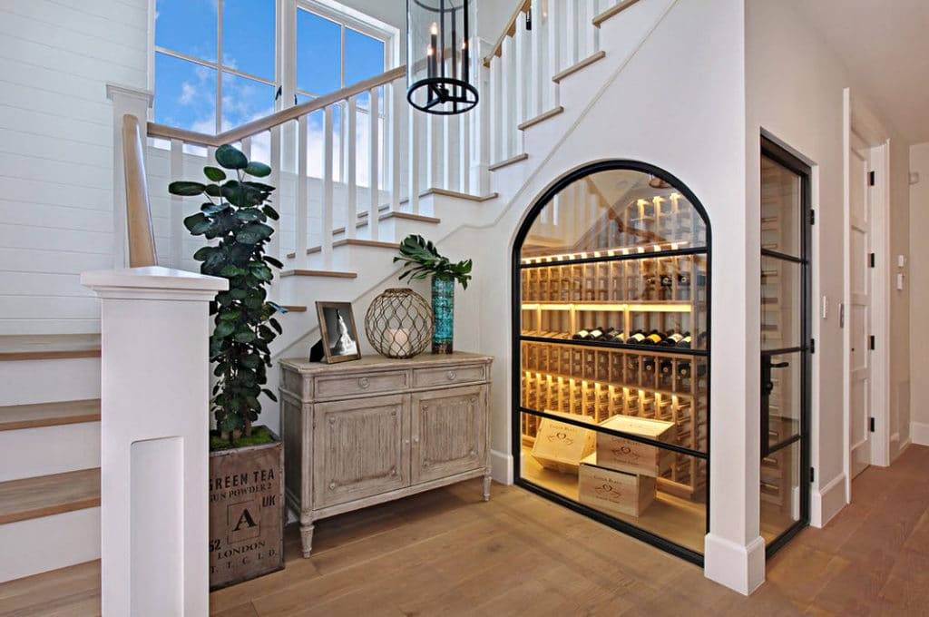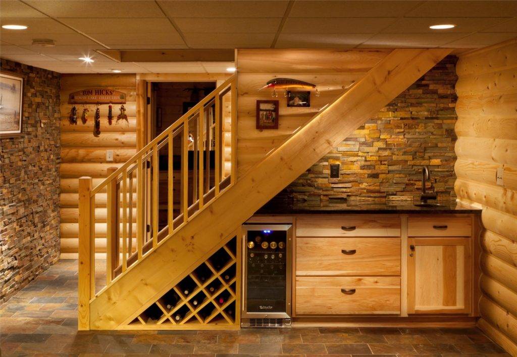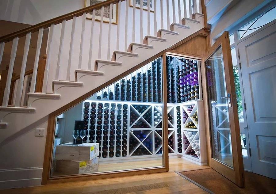 Подлестничное пространство можно оборудовать шкафом любого назначения, укомплектовать площадь под ступеньками барной стойкой, стеллажами для хранения коллекции вин. Главное условие – материал мебели, декоративная фурнитура, отделка шкафа должны сочетаться с лестницей по стилю и цвету, чтобы получилась цельная конструкция, дополняющая интерьер комнаты.