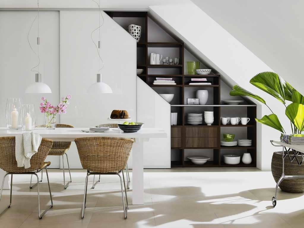 В зависимости от того, где находится лестница, встроенную мебель можно классифицировать по ее роли в повседневной жизни семьи.