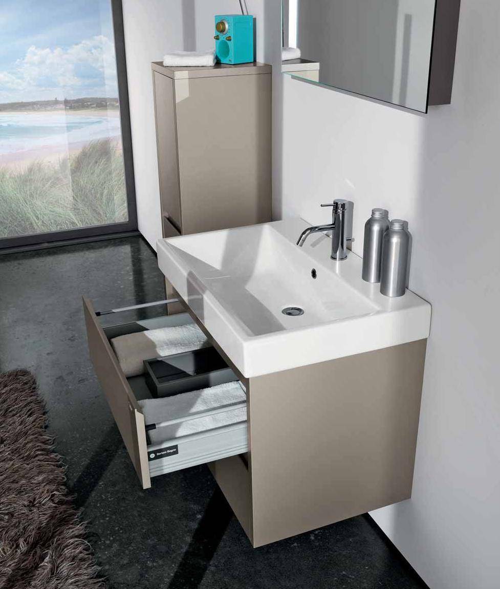 Самая популярная группа среди мебели для маленьких ванных комнат — это та, которая установлена под раковиной. Кроме того, вы можете выбрать шкафы, стоящие и висящие в виде колонны или комода. Производители предлагают наборы мебели с санузлом, представляющие собой идеально скоординированный дуэт и дающие возможность составить собственные композиции в рамках данной серии.