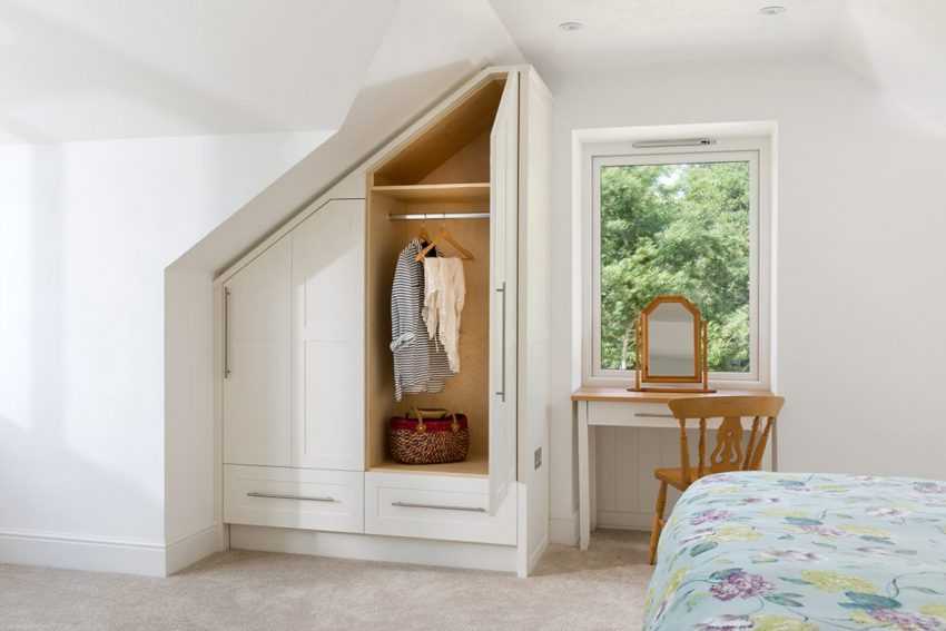 Шкаф может иметь и форму трапеции, широкое основание которой находится у стены.