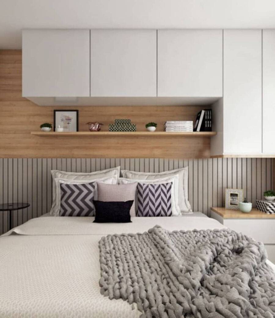 Необходимость шкафа над кроватью в спальне может быть продиктована небольшими размерами комнаты и удобством для хозяев.