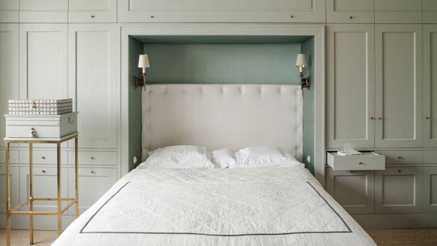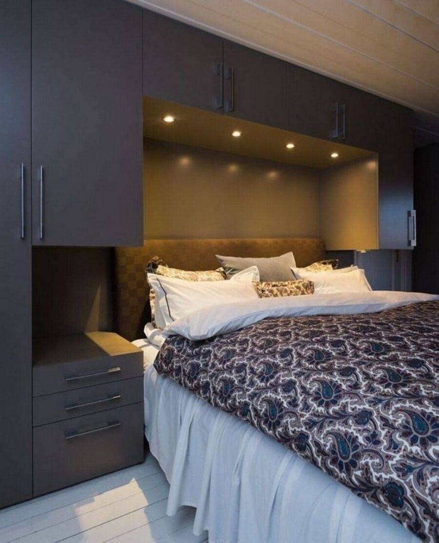 - ниши в боковых шкафах можно использовать вместо прикроватных тумбочек;