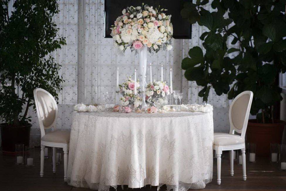 - Для посадки большего количества людей стоит выбрать скатерть по стандартным рекомендациям, предварительно измерив диаметр столешницы. Как правило, большие столы используются для праздничных и официальных мероприятий, а потому точный выбор – то, что сделает стол идеальным.