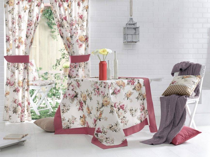 Скатерть с цветочным принтом в интерьере кухне стиля прованс