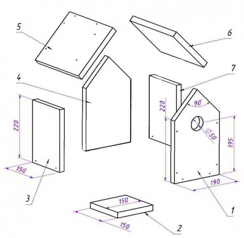 Существует несколько вариантов конструкции птичьих домиков и все они хороши. Каждый из них подразумевает один и тот же процесс сборки. Разница состоит в форме, параметрах отдельных деталей и направлении ската крыши.