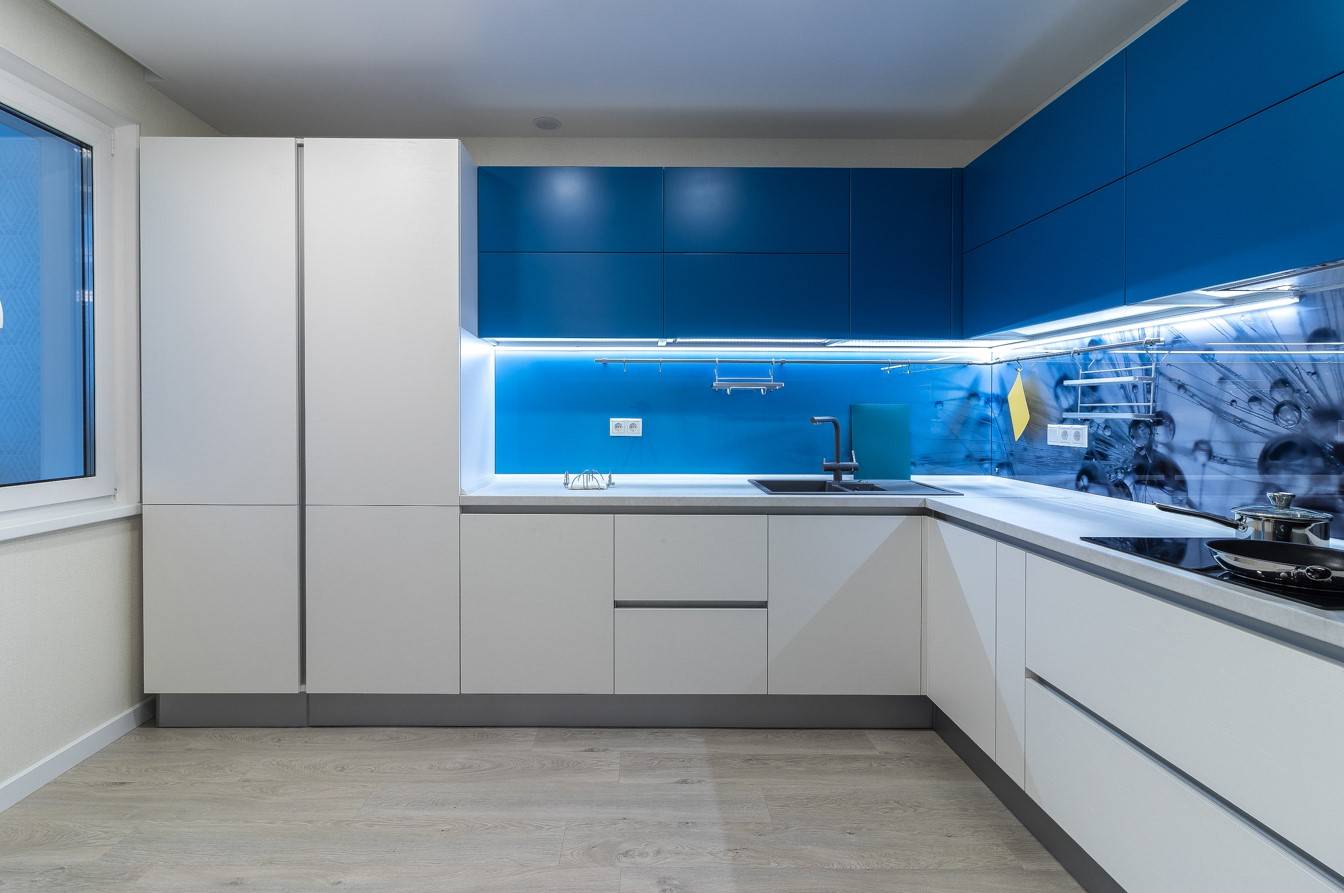 Совет: голубой и белый можно взять за основу цветового оформления кухни, а добавив к нему любой другой контрастный, яркий или нейтральный цвет, вы создадите беспроигрышную комбинацию.