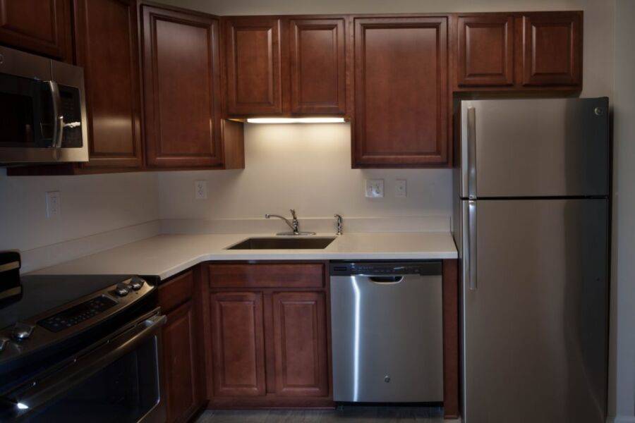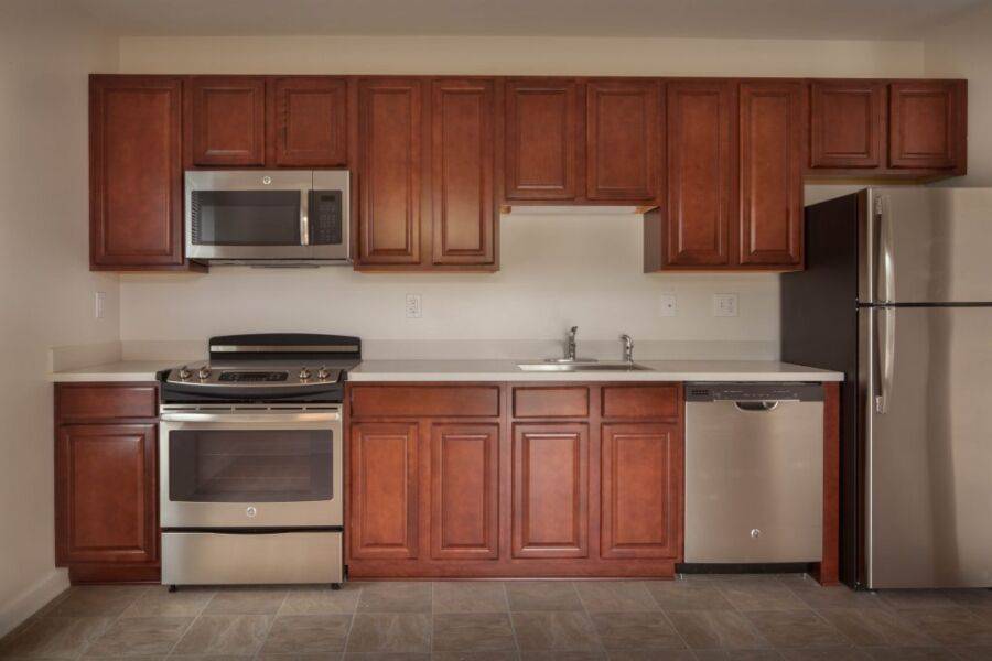 Самая некапризная в уходе – светло-серая кухня с глянцевыми фасадами, с поверхности которой легко удаляются любые загрязнения с помощью влажной и сухой тряпки. Сложнее с матовыми фасадами. Их можно мыть с помощью мыльного раствора, мягкой губки и тряпки.