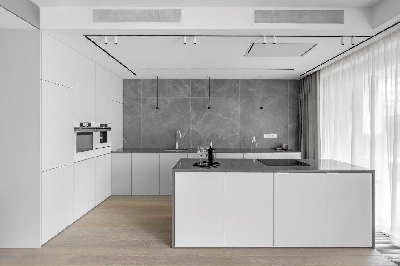 Монохромный дизайн кухни.