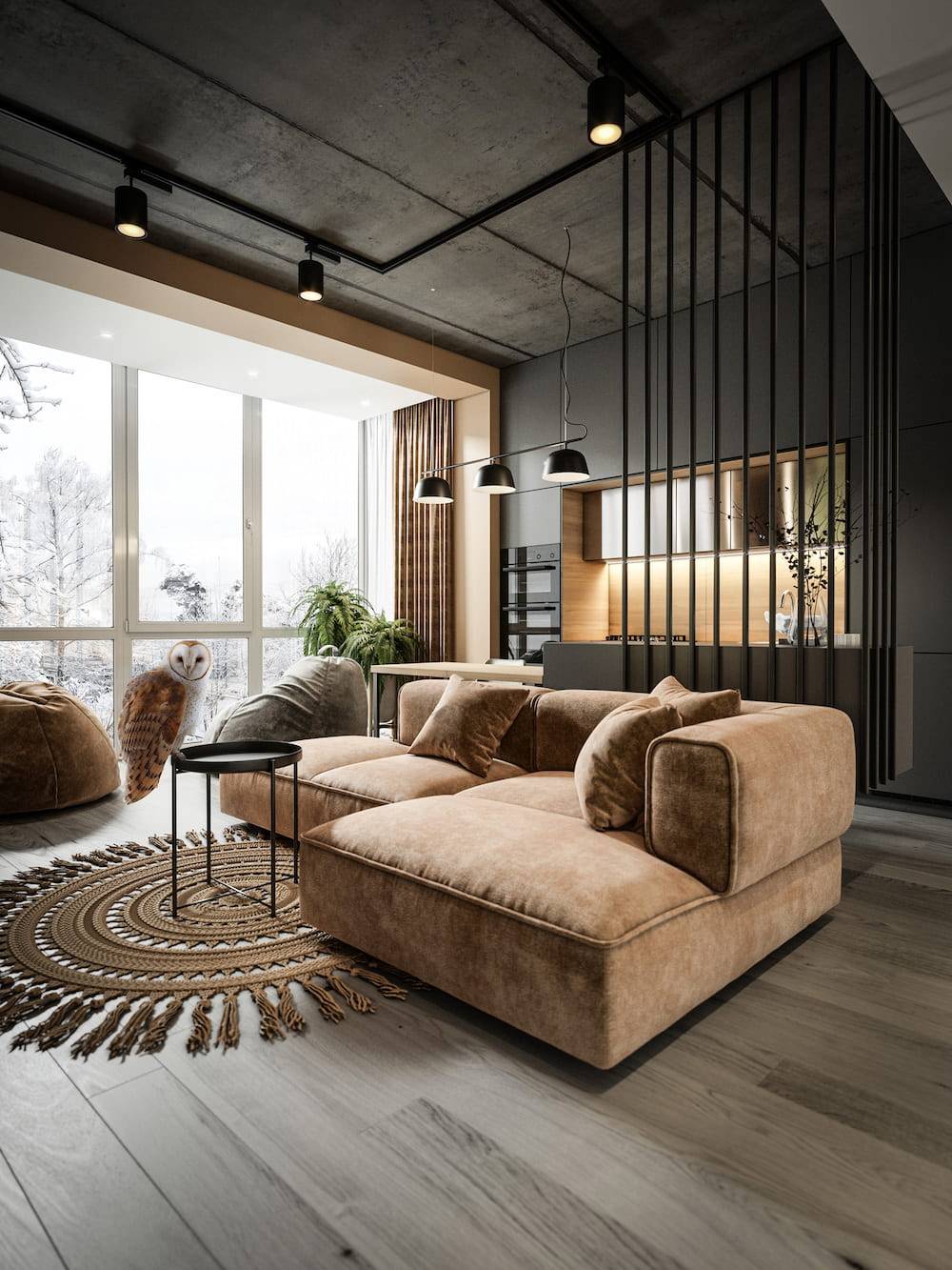 Коричневый хорош тем, что не перетягивает внимание на себя. Можно экспериментировать c текстурами, узорами, сложными конструкциями