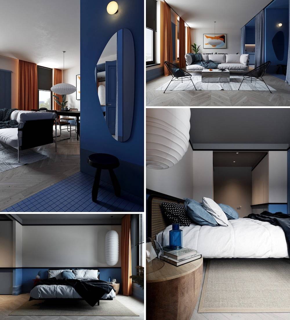 Синий незаслуженно считают холодным и неприветливым, хотя в сочетании с зеленым, цветом бирюзы, белым, серым, золотистым, красным и фиолетовым он становится синонимом домашнего уюта.