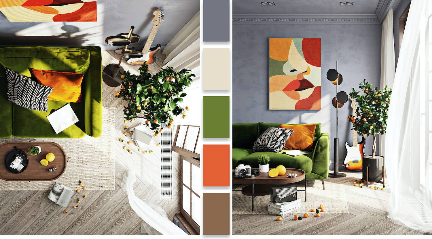 Неважно, какой оттенок ваш любимый в интерьере – желтый, зеленый, оранжевый, фиолетовый – для любой комнаты можно подобрать удачное сочетание