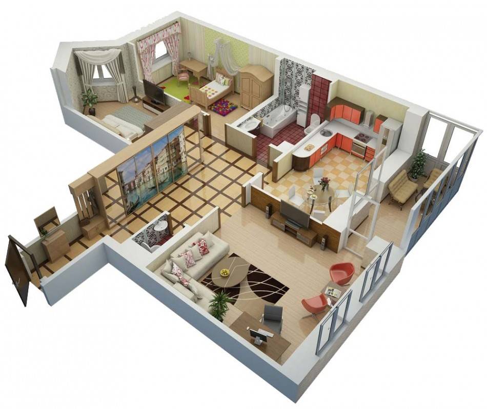 В данный состав включают несколько вариантов планировки с разных ракурсов. Могут использоваться и различающиеся между собой варианты проектирования. Это дает возможность дизайнеру и бригаде рабочих взглянуть на обстановку с разных сторон.