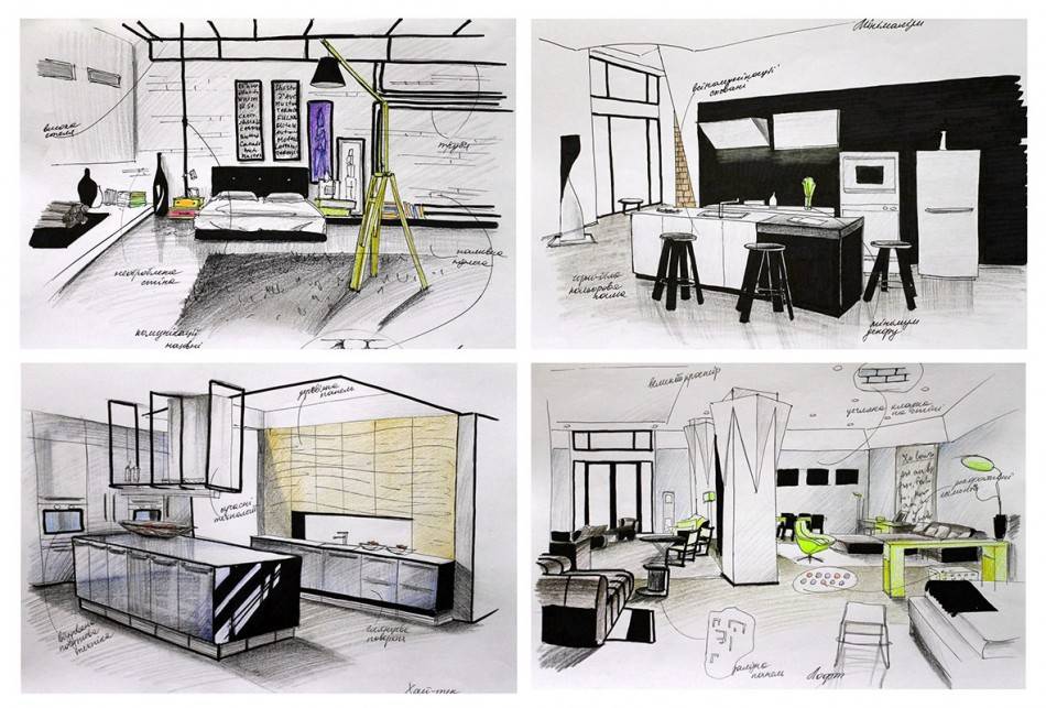Дизайн и проектирование интерьера ведется при помощи программ3D-визуализации. Количество эскизов (ракурсов) определяется площадью помещения и сложностью преобразований. Эскизный проект содержит: