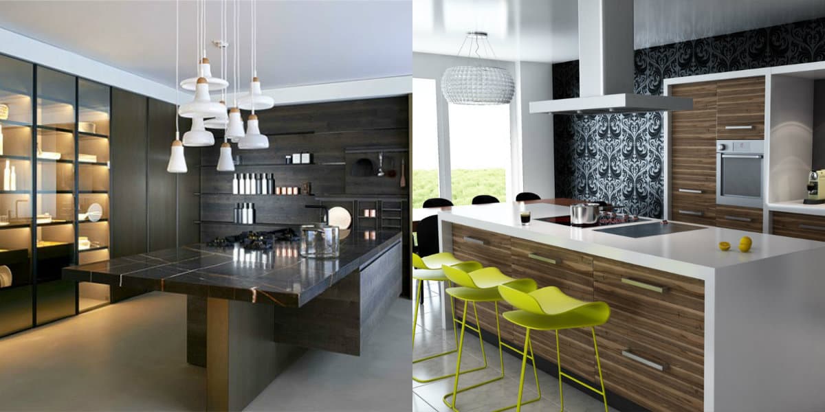 Для современной кухни подходят элементы из природного камня (мрамор, гранит).