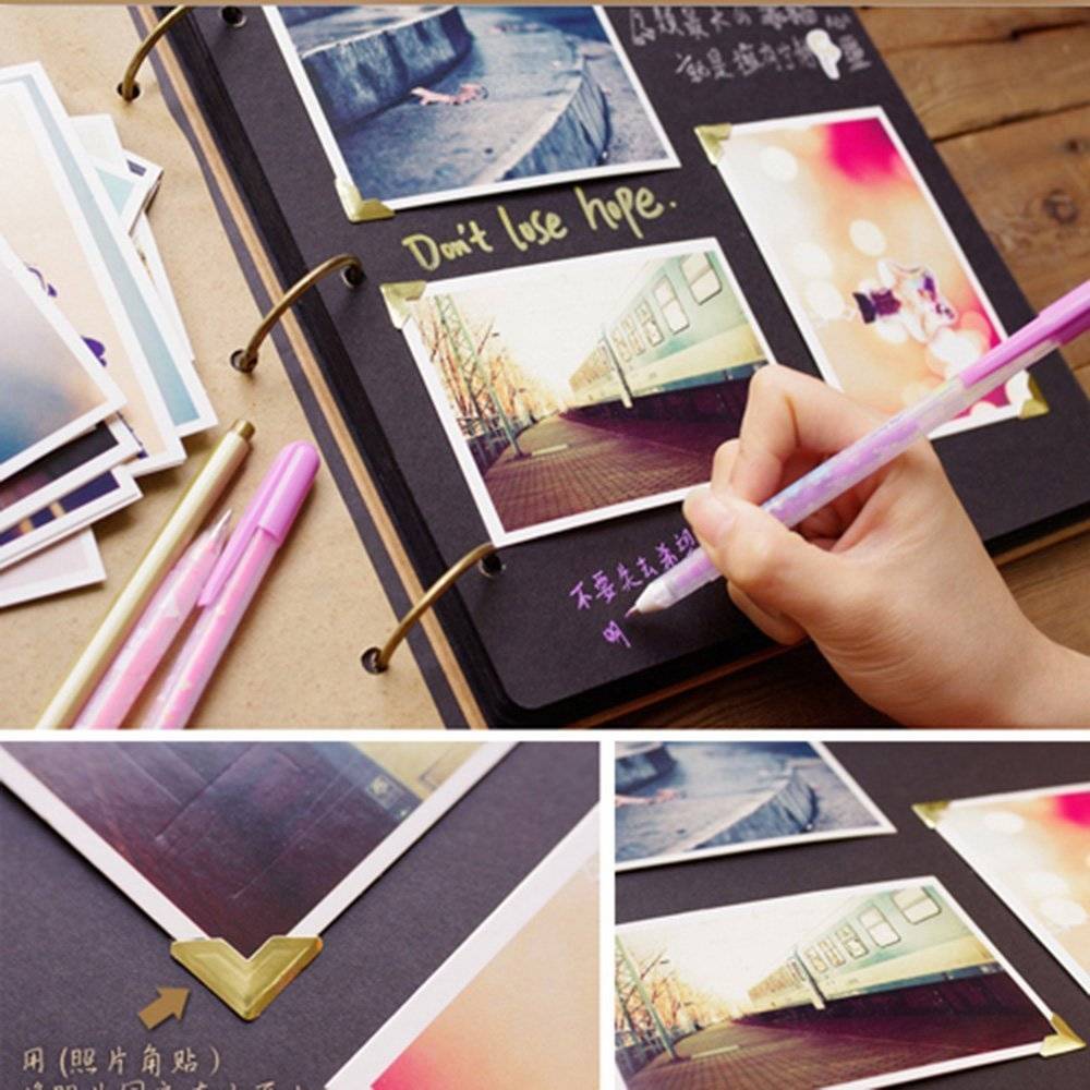 Самый первый вариант фотоальбомов, остающийся популярным по сей день. На страницы снимки крепят специальными уголками, двусторонним скотчем или клеем. Между листами располагают защитные вставки, предотвращающие соприкосновение фотографий и их деформацию.