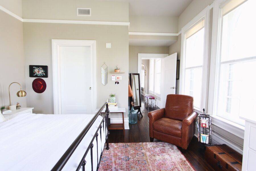 - Во-первых, кровать с учётом её расположения и дизайна.