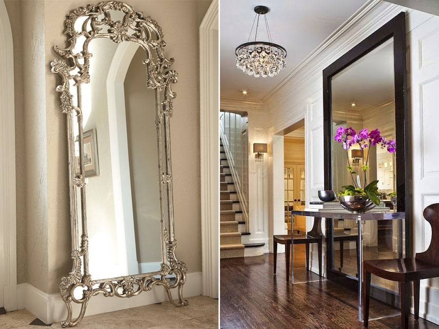 В холле или гостиной зеркало лучше всего разместить таким образом, чтобы в нем отражались прекрасные элементы декора.