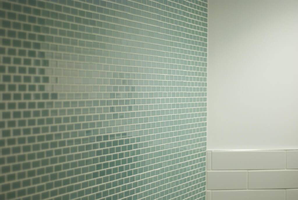 Лаконичные линии в кладке плитки маленьких размеров на стене.