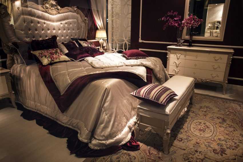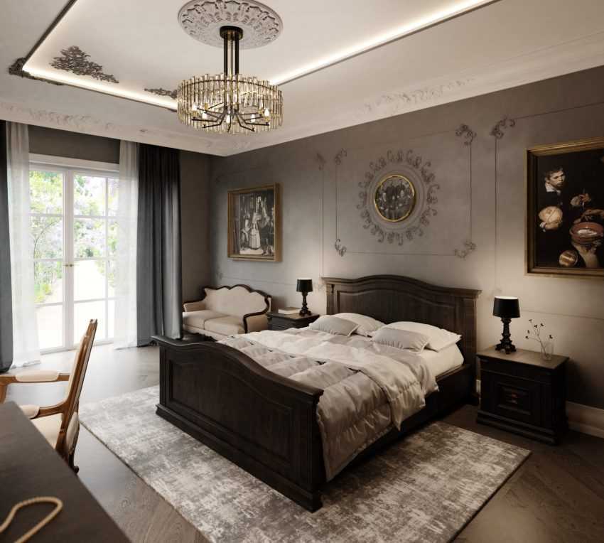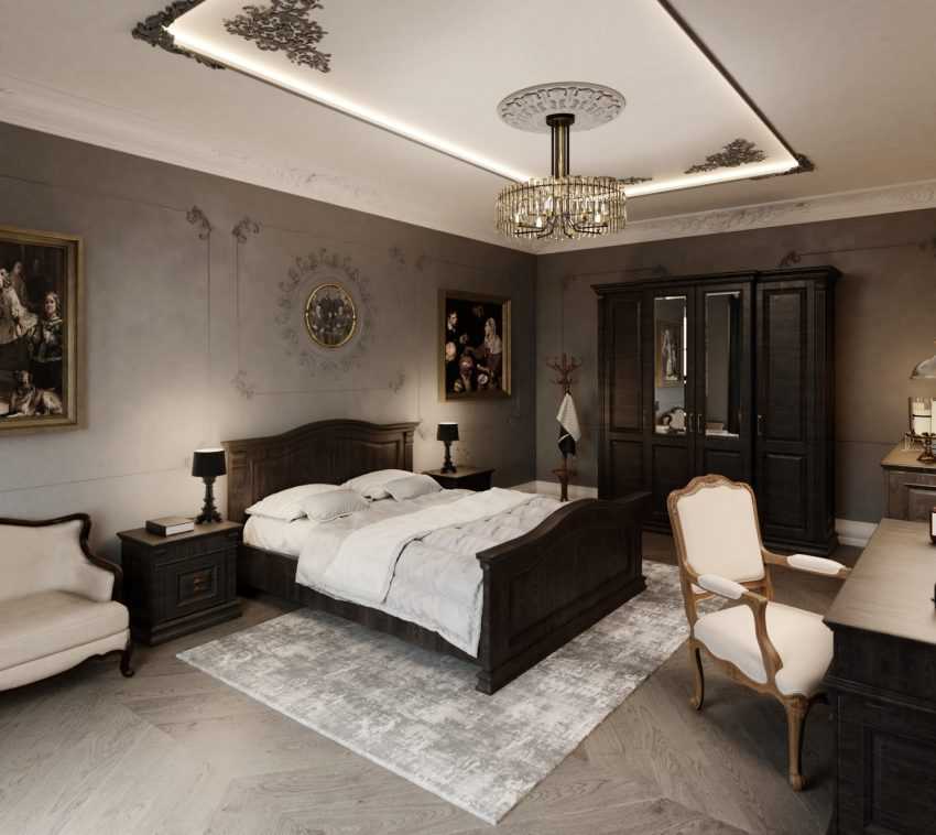 С другой стороны, спальня, стилизованная под классический или неоклассический стиль, будет значительно отличаться от стандартных комнат. В связи с этим комнаты отличаются уникальным расположением, которое проявлялось в богатстве украшений, позолоты, а также в насыщенных цветах. Ранее классицизм удачно сочетался с чертами барокко. В настоящее время классические спальни, вдохновленные временем прошлых лет, чем-то напоминают палаты дворца. Большая кровать в классическом стиле со стеганными изголовьями, люстрами, настенными светильниками, плотными тканями, туалетными столиками, комодами — это лишь некоторые из признаков классицизма в дизайне интерьера.