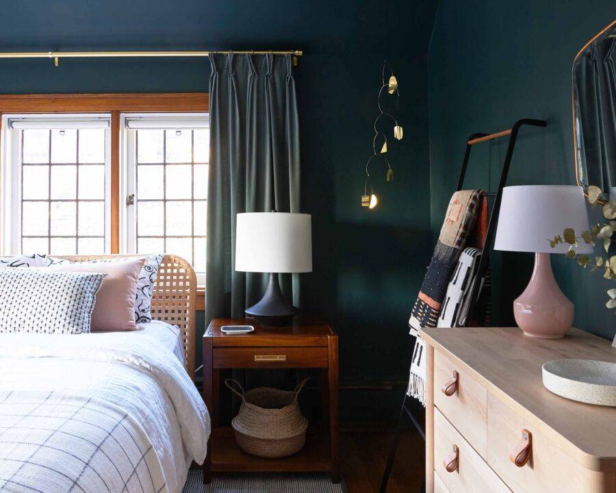 Если хочется добавить чего-то свежего в дизайн спальни в пастельных тонах, выбирайте мятный цвет. Он смешан из оттенков зеленого и синего цветов и может быть ярким акцентом в вашей спальне. Розово-бежевый цвет пудры отлично вписывается в романтический или стиль «прованс».