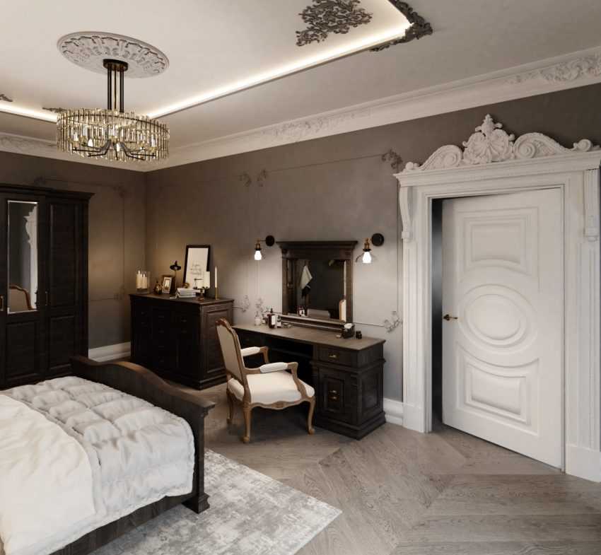 Спальня в классическом стиле визуально отсылает в прошлое. В таком дизайне прослеживаются следы ампира, барокко и классицизма. Интерьер спальни в духе классики зачастую напоминает королевские покои.