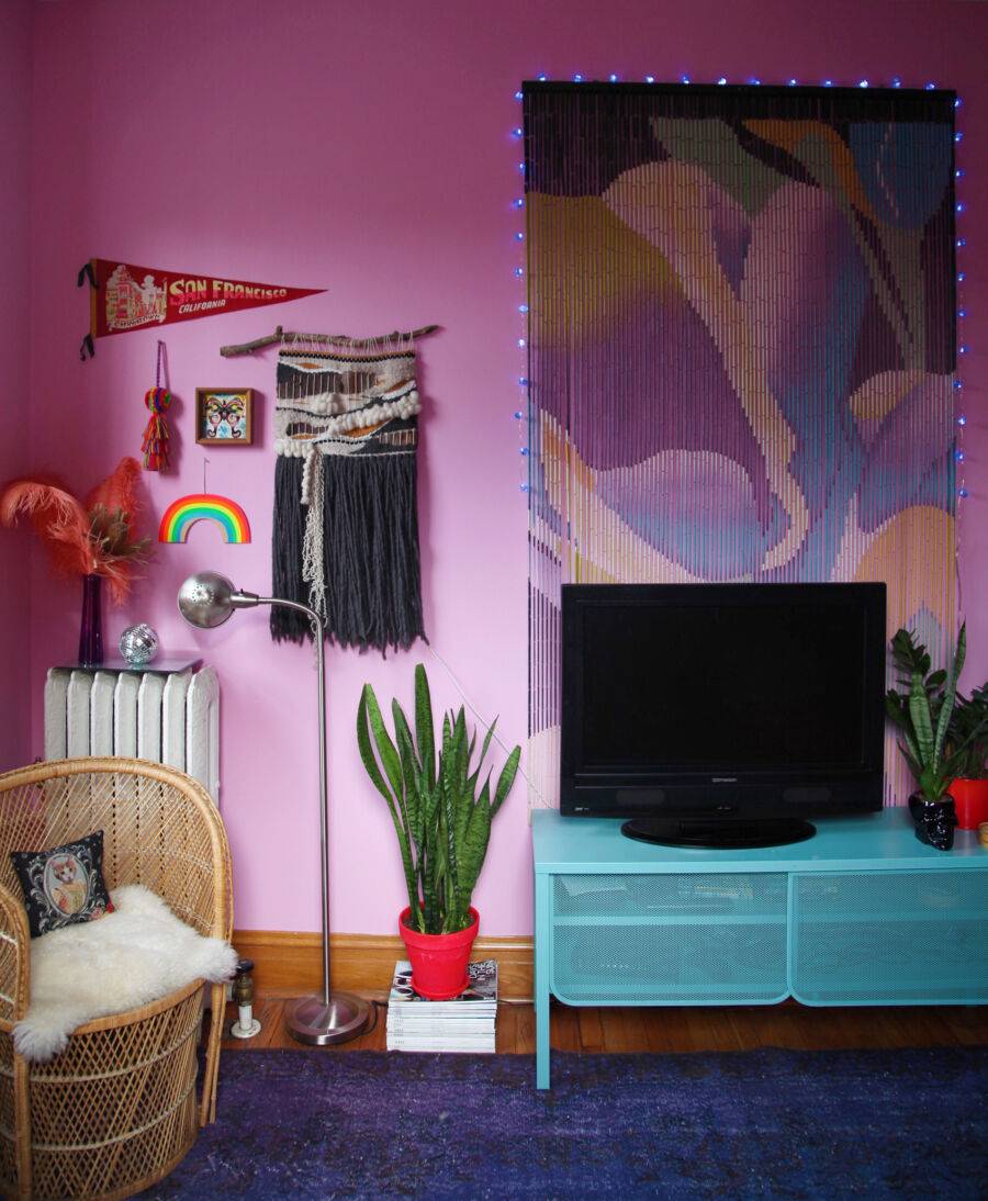 - светлый текстиль вместе с одним ярким акцентом сделают комнату привлекательной;