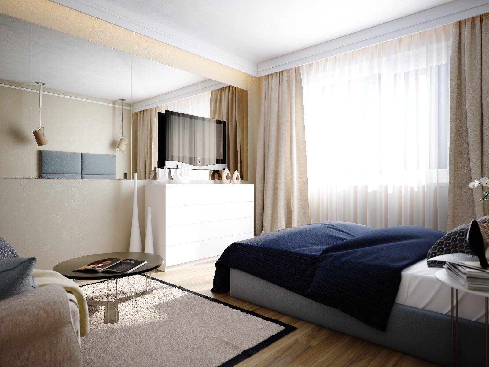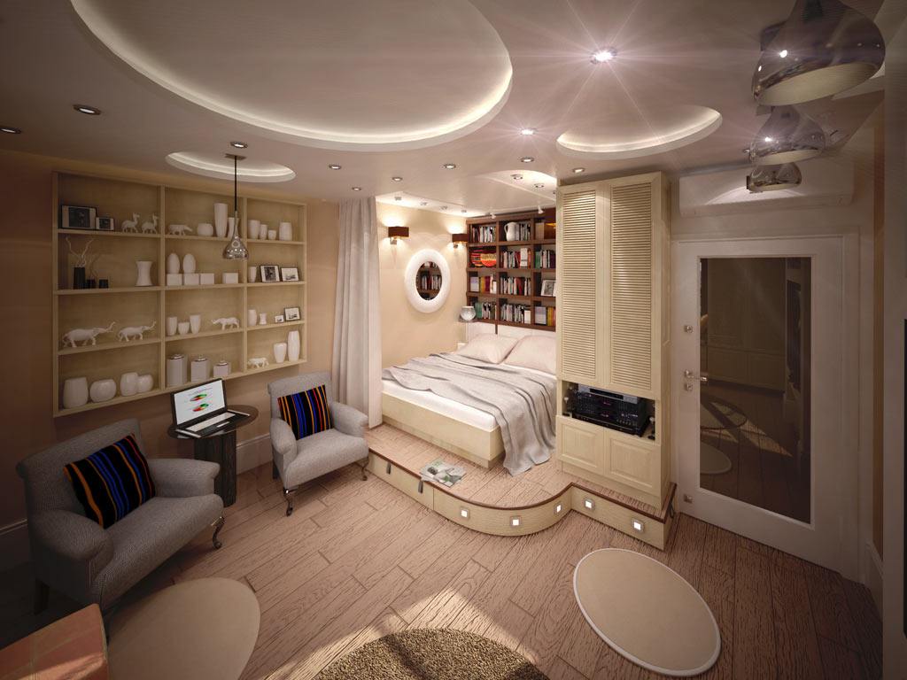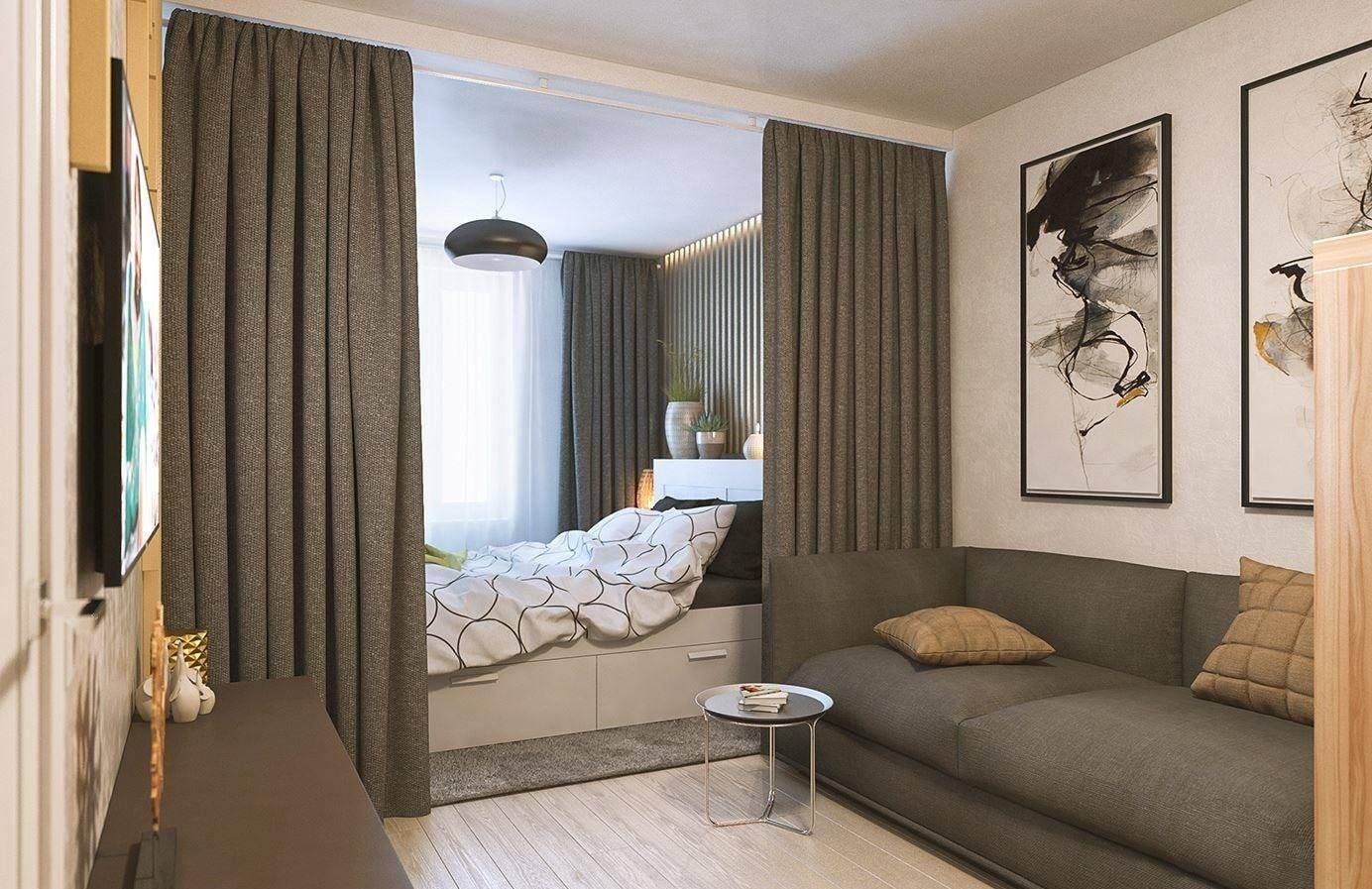 Правильное зонирование спальни и гостиной в однокомнатной квартире.