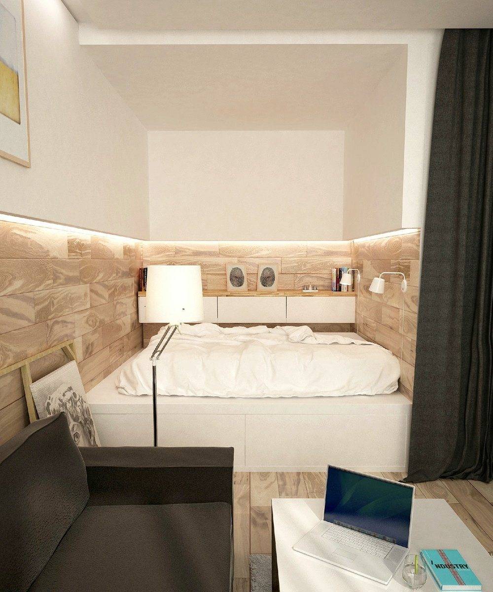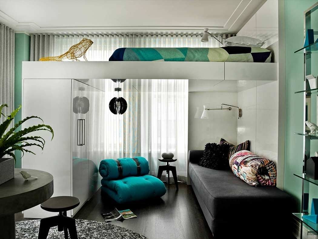 Многие при обустройстве квартиры забывают, что, кроме горизонтального пространства, есть еще и вертикальное. Двухъярусная кровать или кровать-чердак будет идеальным решением для экономии пространства. Под ней можно обустроить рабочую зону, поставить диван, если есть дети, то устроить игровую зону. Кроме того, вдоль кровати можно повесить штору, что создаст дополнительную перегородку от остального пространства и добавит уюта.